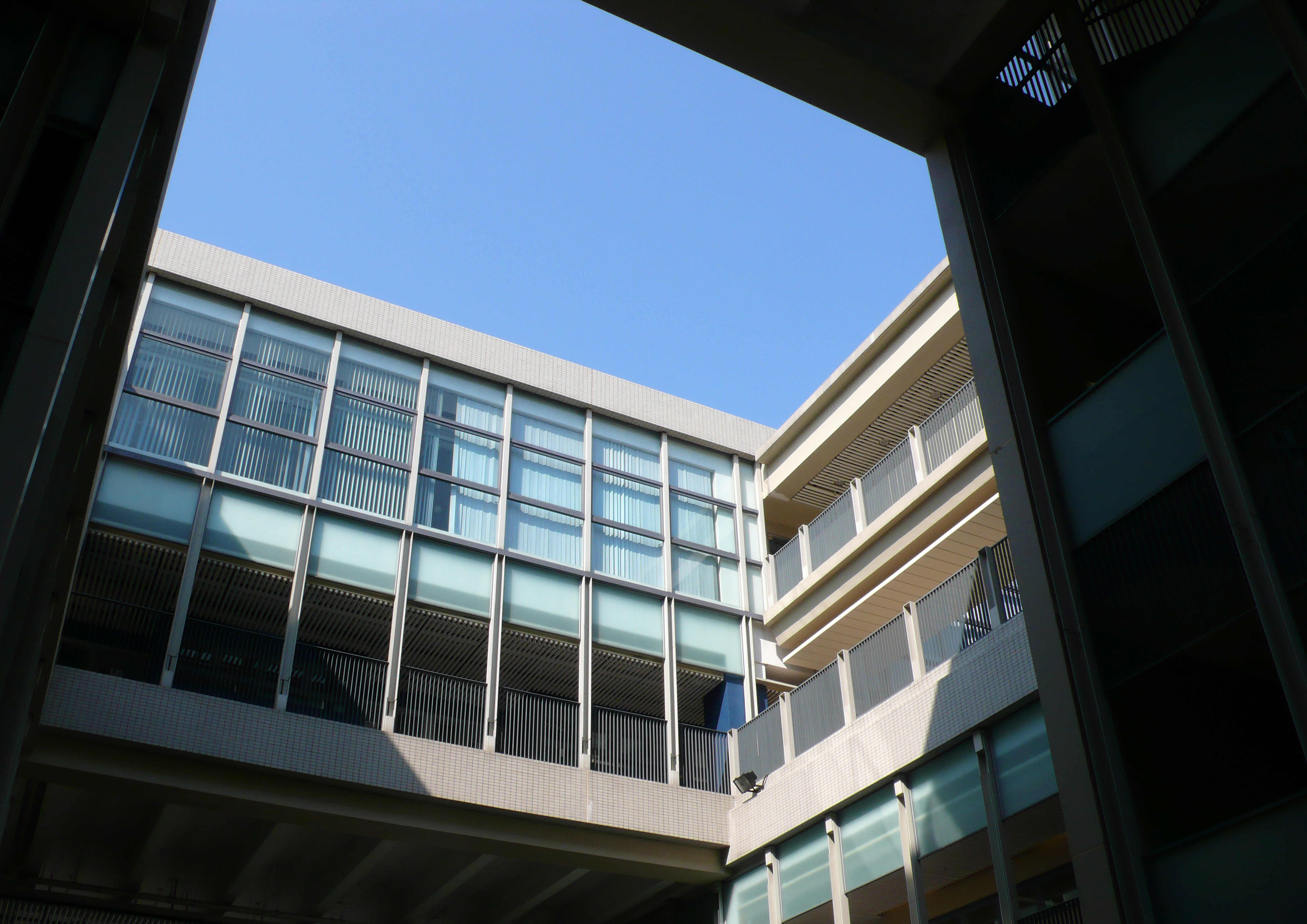This project is one of a series of design addressing how to re-invent the traditional courtyard typology for contemporary multi-leveled urban conditions. It also aims to establish an innovative cluster-based fabric system of classrooms, and create variety of open or in-between indoor/outdoor spaces at different levels. For a college of seven stories high sitting on a sloped site, the design moderates spaces of intermediate scale through establishing multi-leveled courtyards and decks. Rather than using large scale of tall blocks, this project interlocks, rotate and overlap two-leveled linear module of classroom blocks, creating a series of two-storied courtyard unit of 14 by 14 meters. Most classrooms would be able to either have their courtyard on the ground level, or terrace deck on the upper levels. In the humid and hot weather of Southern China, it also provides shaded opens paces and opens up two leveled openings allowing cross ventilation and the airflow to travel across the courtyards. The design lifts most of the building mass from the ground, preserves the original contour and green slope with original trees in the site.